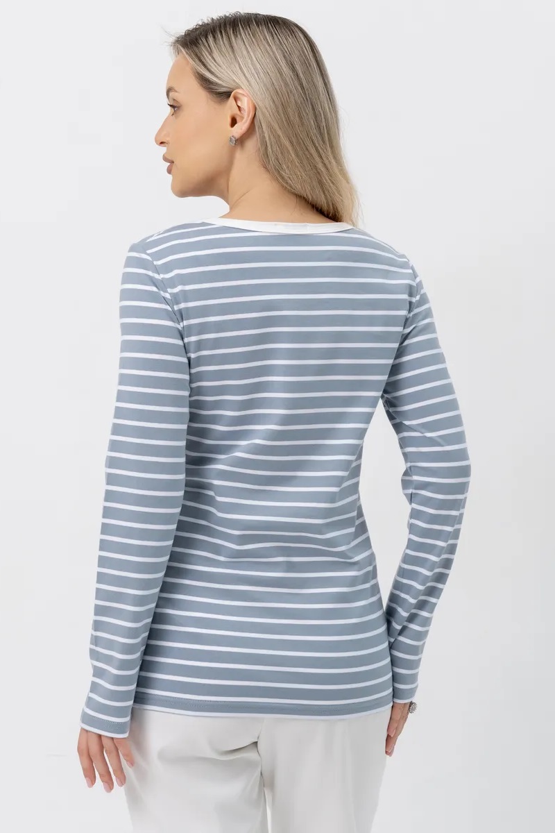 Практичный лонгслив из эластичного хлопкового трикотажа с длинным рукавом незаменим для беременных и кормящих мамочек. Универсальная модель: отлично смотрится и с джинсами, и с юбкой. Удобный секрет для кормления позволяет незаметно покормить малыша.