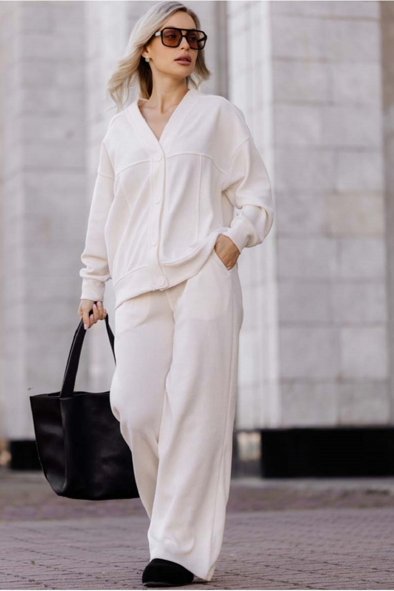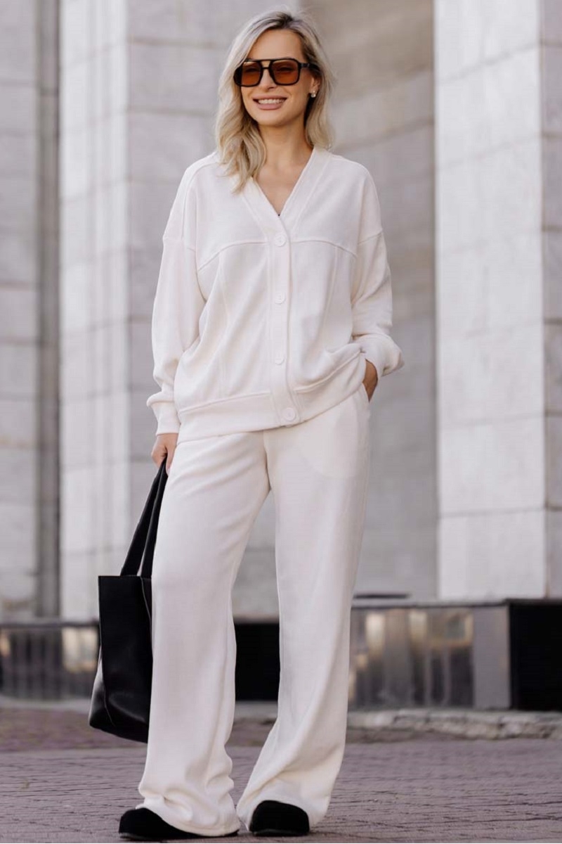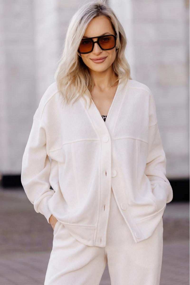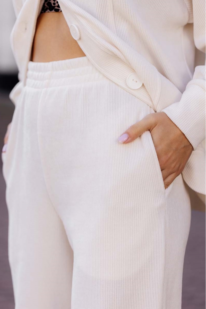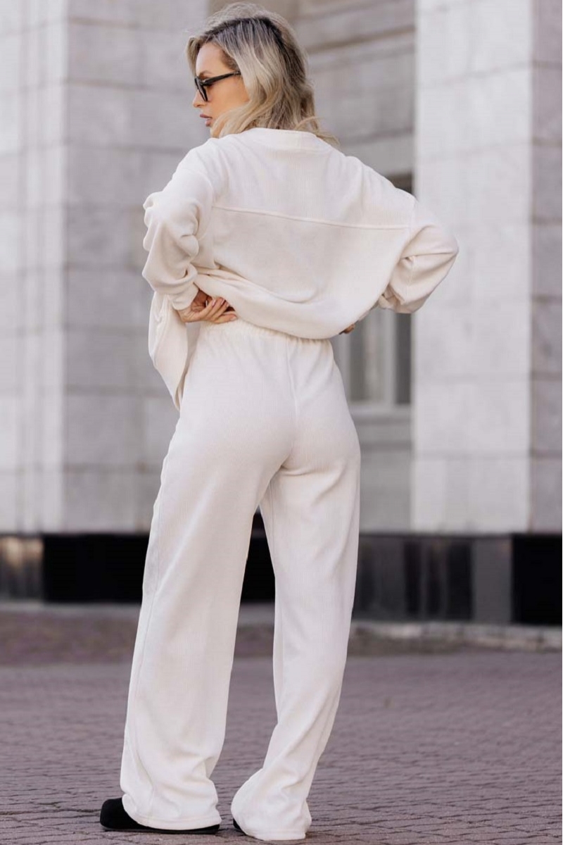 1-НМ 78412 Комплект женский вельветовый (брюки и бомбер) молочный