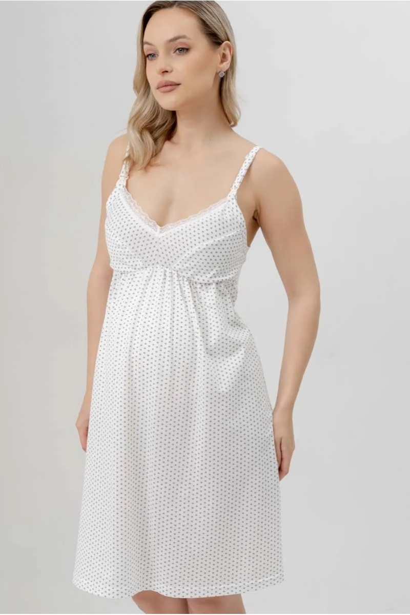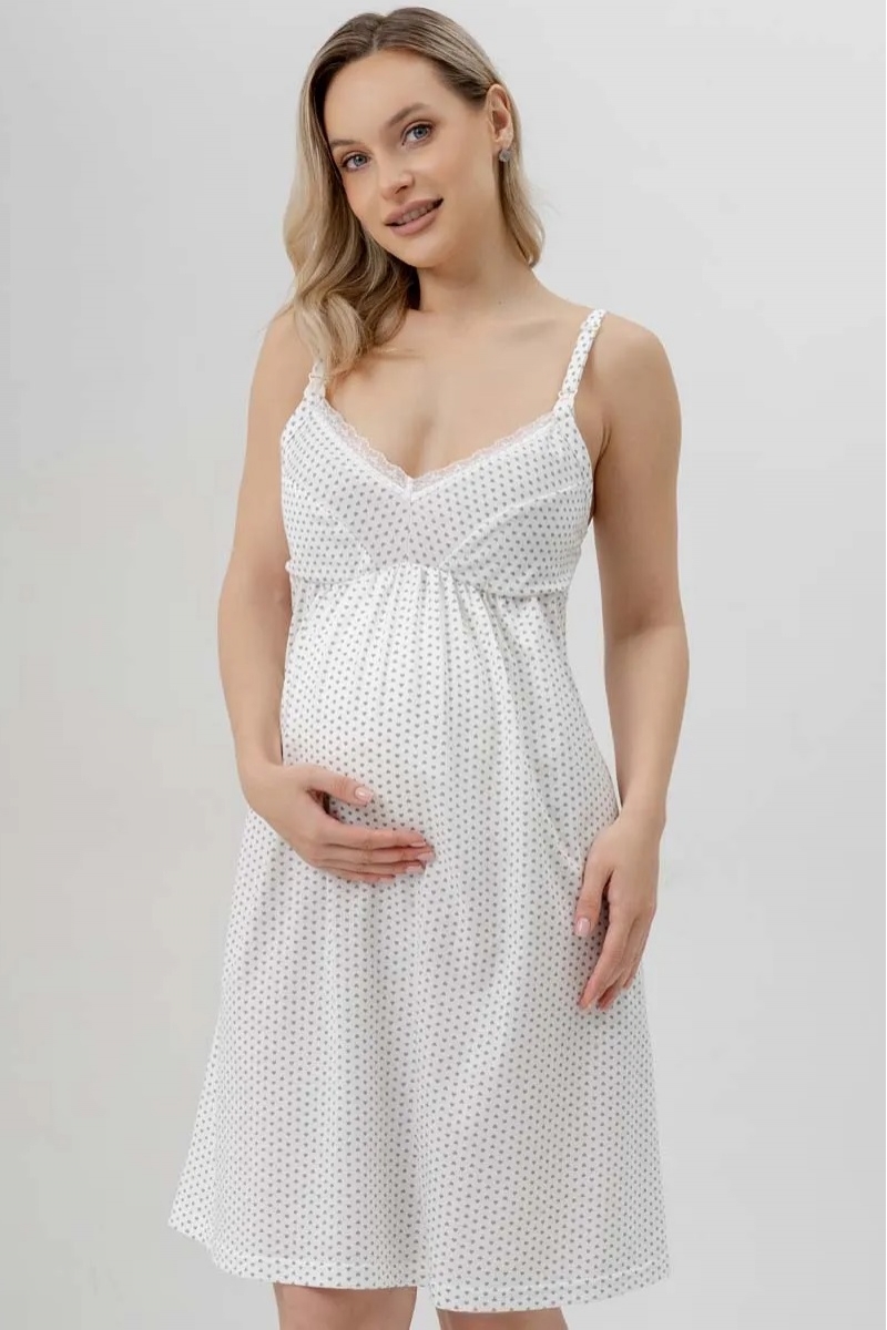 Сорочка из мягкого хлопка с изящным кружевом , удобным секретом для кормления, создана для максимального комфорта будущих и кормящих мам. Модель с регулируемыми бретелями и застёжкой-клипсой. Небольшая сборочка под грудью идеально лежит на беременном животике и обеспечивает комфорт и удобство.