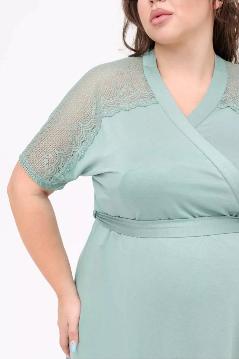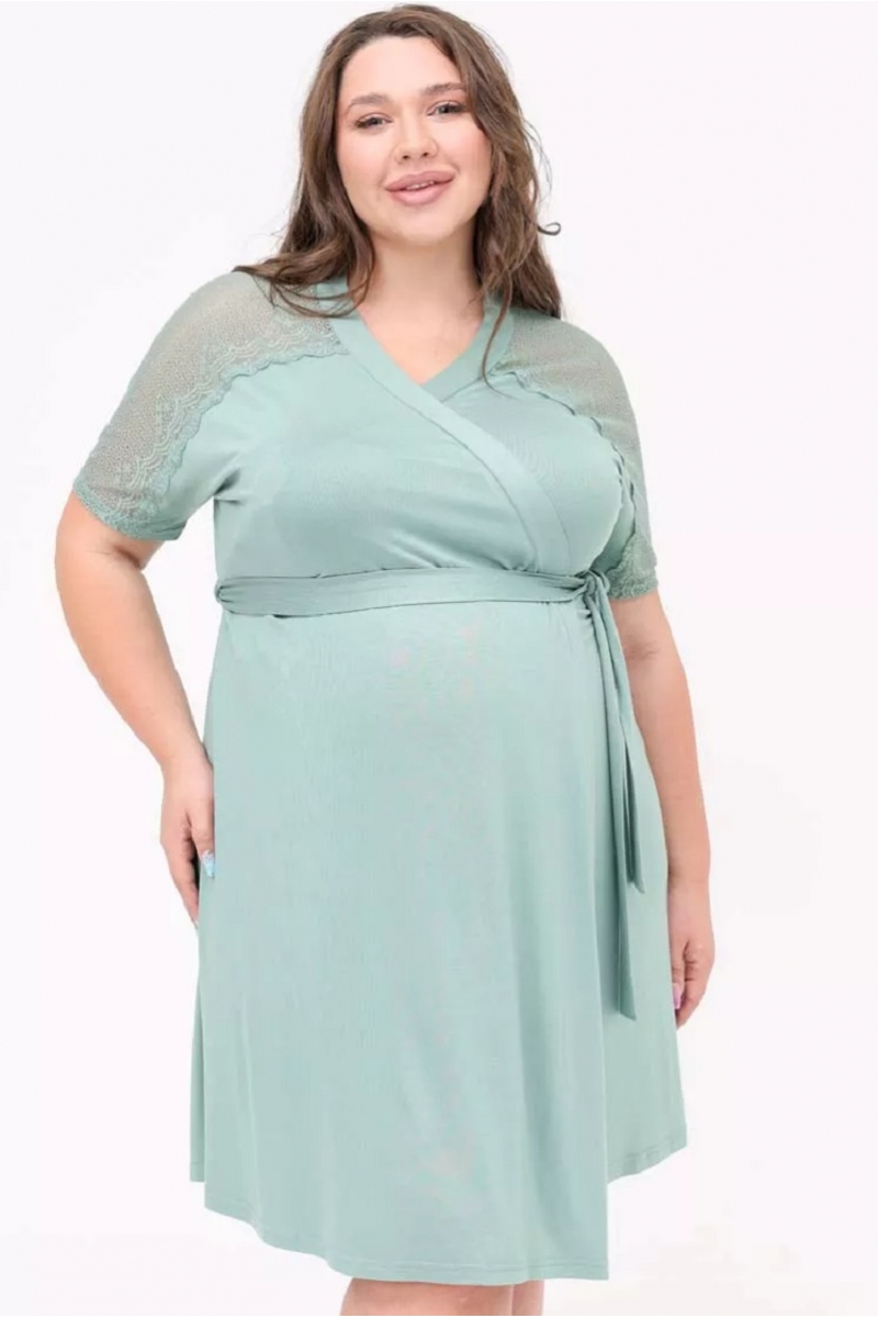 Трикотажный элегантный домашний халат для беременных и кормящих из вискозы с кружевом на запах.