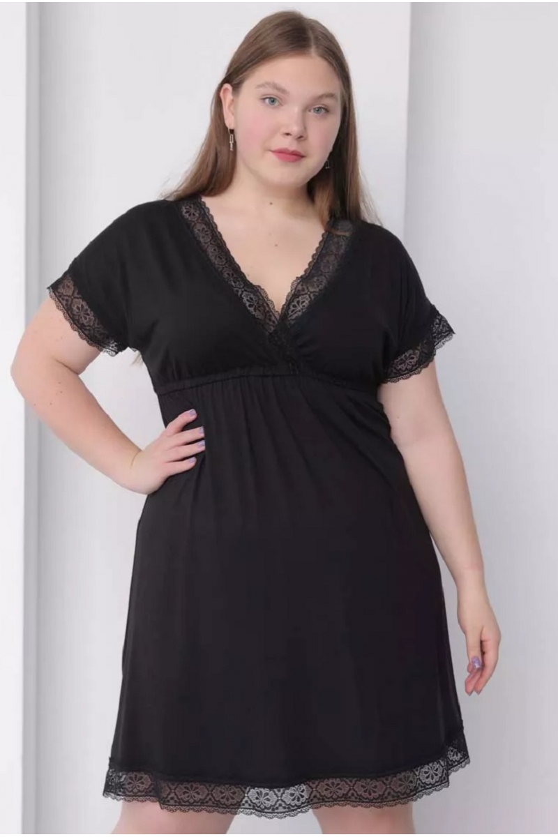 Сорочка для женщин из высококачественной вискозы с V-образным вырезом. Элегантная отделка хлопковым кружевом. Идеальная посадка на большие размеры.