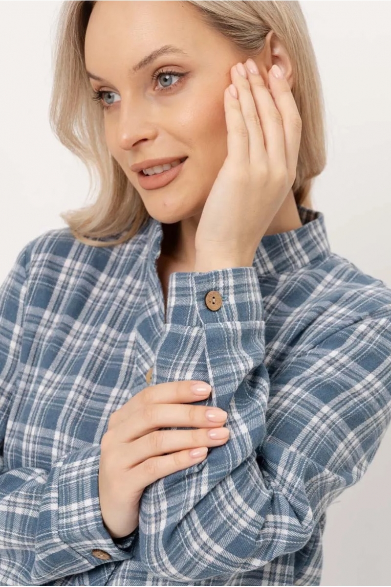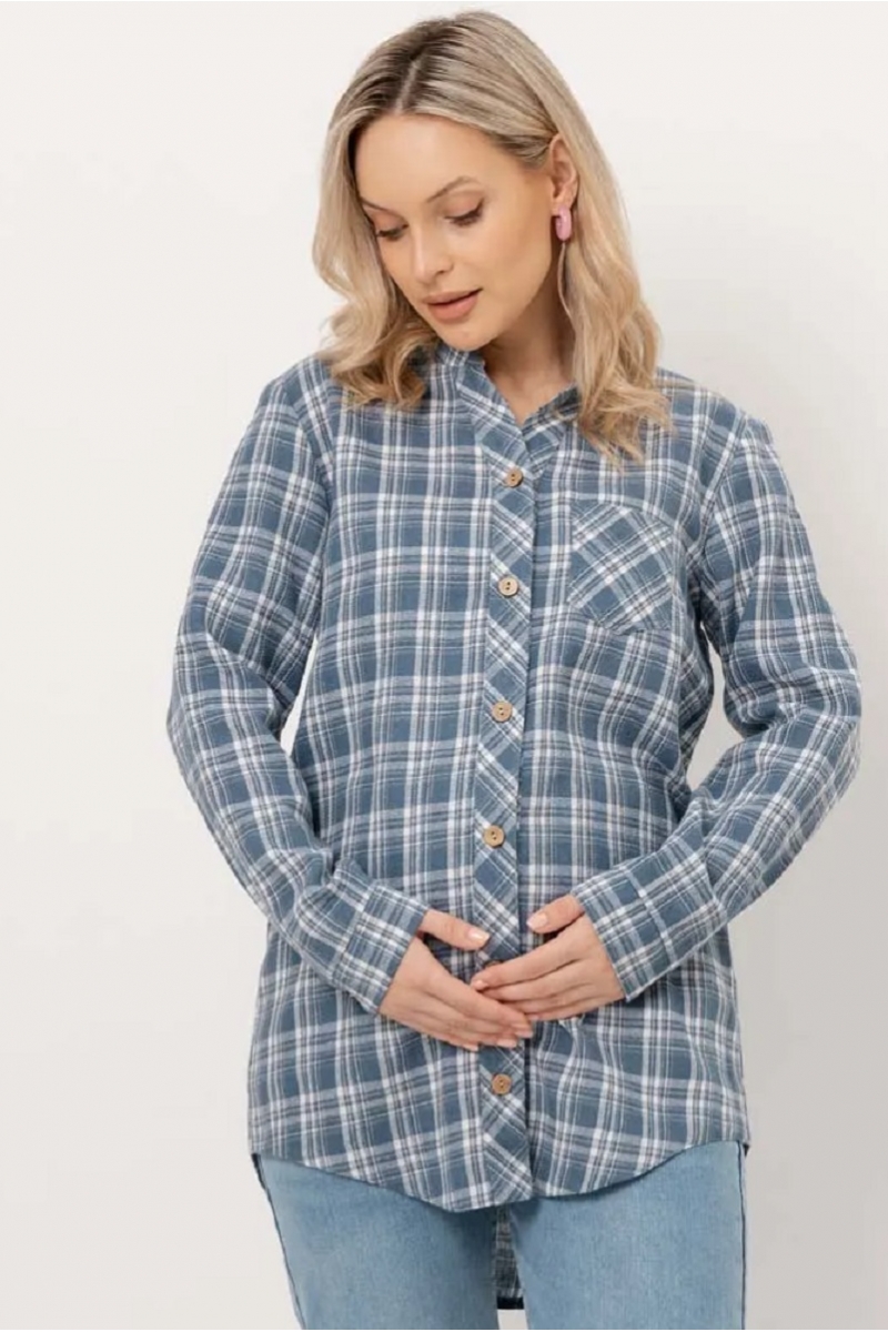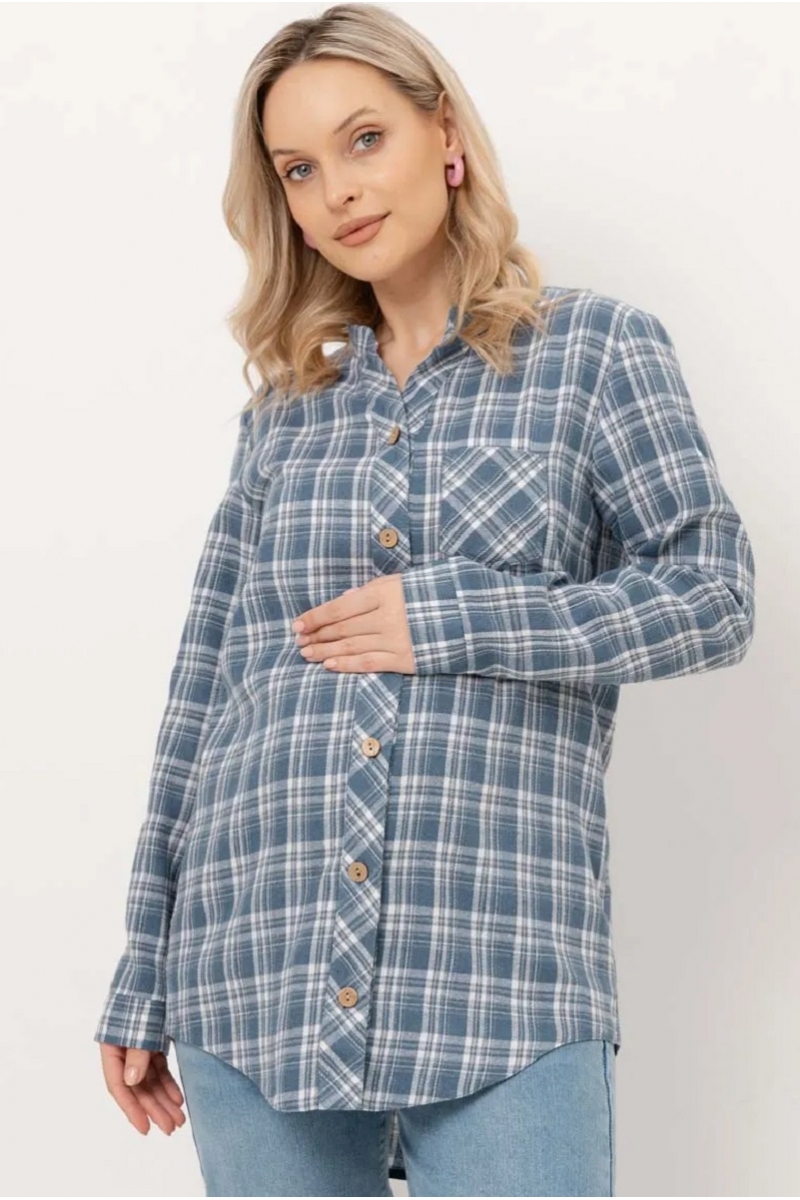 2-НМ 08001 Рубашка для беременных и кормящих мам голубой/молочный