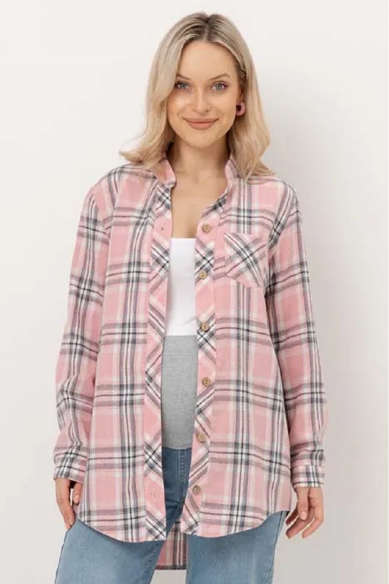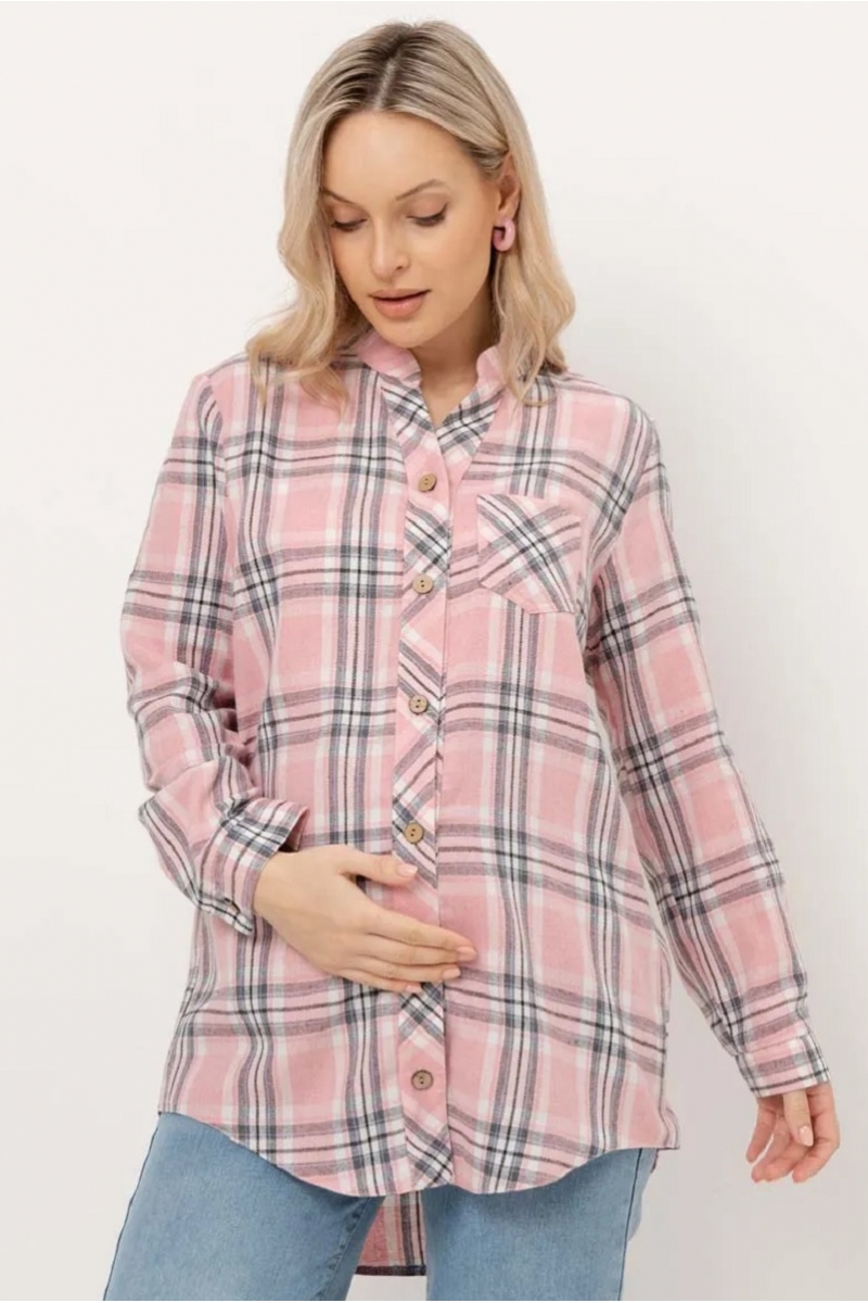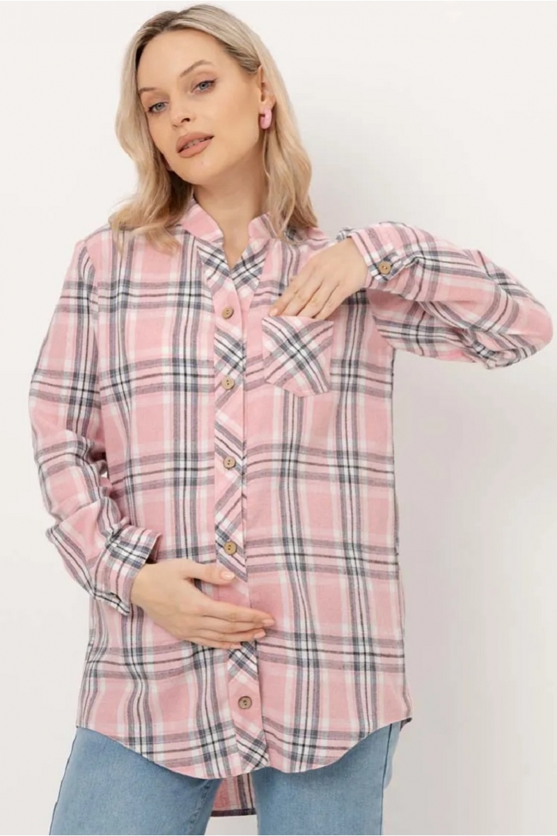 2-НМ 08001 Рубашка для беременных и кормящих мам розовый/молочный /серый