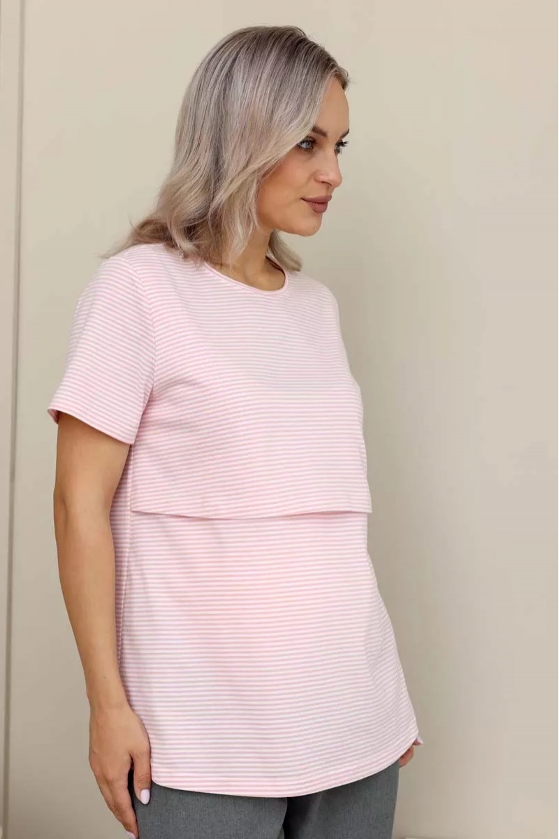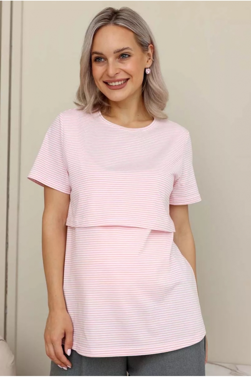 1-НМ 73301 Футболка хлопковая для беременных и кормящих белый/персиковый