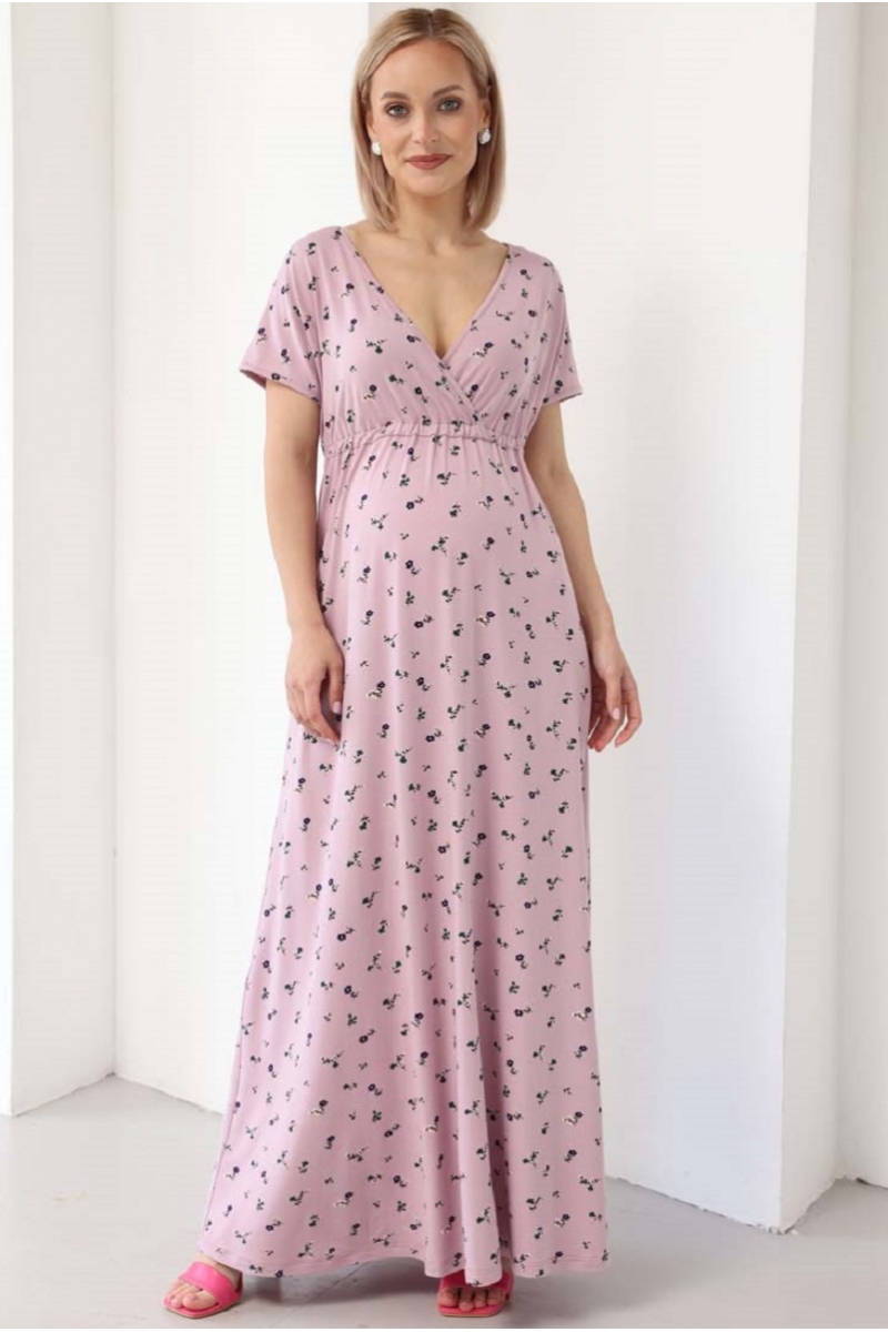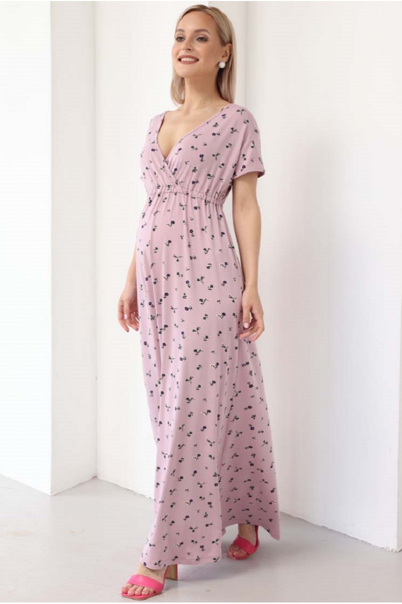 Платье для беременных и кормящих с секретом кормления. Длинное летнее платье с короткими рукавами. Платье выполнено на запах для удобства кормления малыша. Прекрасно послужит вам как на любом сроке беременности, так и после рождения малыша, деликатно скрывая все нюансы фигуры.